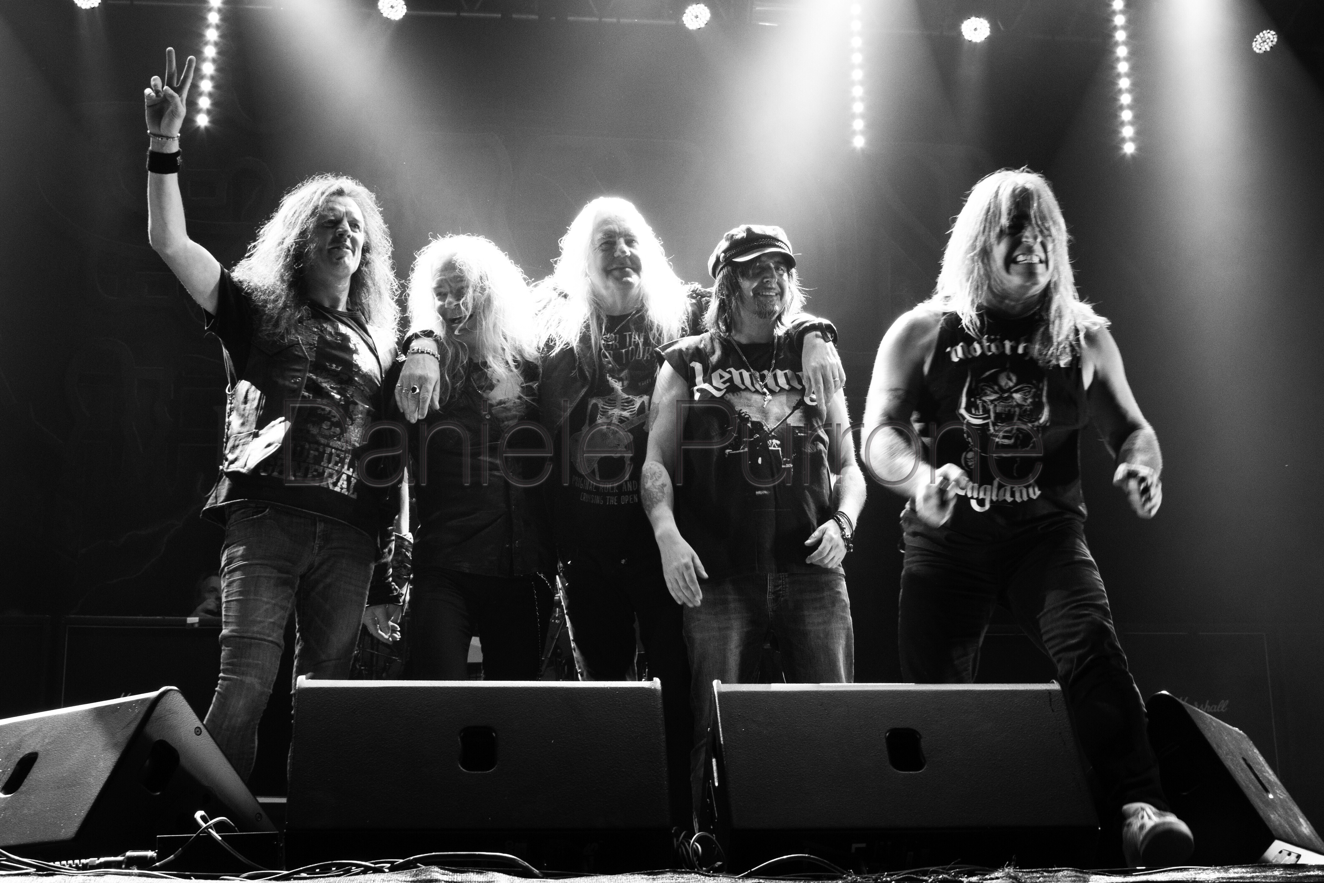Doveva essere la sera della celebrazione, e sicuramente lo è stata, ma è innegabile che, per molti fan, sia rimasto anche un retrogusto da occasione sprecata. Il problema innegabile è stato inserire quello che doveva essere un evento (Mikkey Dee e Phil Campbell che tornano a suonare assieme pezzi dei Motörhead) non in un concerto vero e proprio, ma come elemento aggiuntivo per riempire i ritagli di tempo nel contesto avulso di una serie di gare automobilistiche, per una competizione chiamata Lemmy 500. I Saxon iniziano a suonare alle 20, e sono i soliti Saxon: una macchina da Heavy Metal, capace di impressionare sia con i brani recenti (l’opener Battering Ram, Sacrifice, I’ve Got to Rock (To Stay Alive)) che con alcuni dei loro classici più grandi (Motorcycle Man, 747 (Strangers In The Night) e 20,000 ft fra le altre). Ancora una volta, Biff si dimostra disponibilissimo a stravolgere la scaletta in base alle richieste dei fan, ed ecco The Eagle Has Landed inserita nonostante la paura di sforare oltre il tempo assegnato. E proprio il tempo assegnato si rivela essere il vero problema della serata: alla fine la band avrà a disposizione solo un’ora, e quando Denim and Leather e Princess Of The Night chiudono il set ci si accorge che mancano all’appello troppi classici, da una Crusader ad una Wheels Of Steel passando per una Strong Arm Of The Law. Viene da consolarsi con “adesso tocca all’omaggio ai Motörhead”, ma nulla da fare: ci tocca aspettare 90 minuti, perché ci sono delle altre gare da svolgere. Noi che attendiamo la band non possiamo fare altro che “goderci” il discreto freddo di una notte svedese di inizio autunno. A completare la beffa, ci dobbiamo anche sorbire la premiazione dei vincitori e, nella prima fila, essere innaffiati dal loro ***** di champagne.